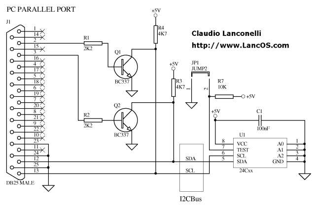 Но главное нужно какой нибудь буфер запитанный от 3.3В между шинами SDA и SCL и контактами 12,13 лпт порта чтобы подтяжки порта не накатили 5 В на эти линии.