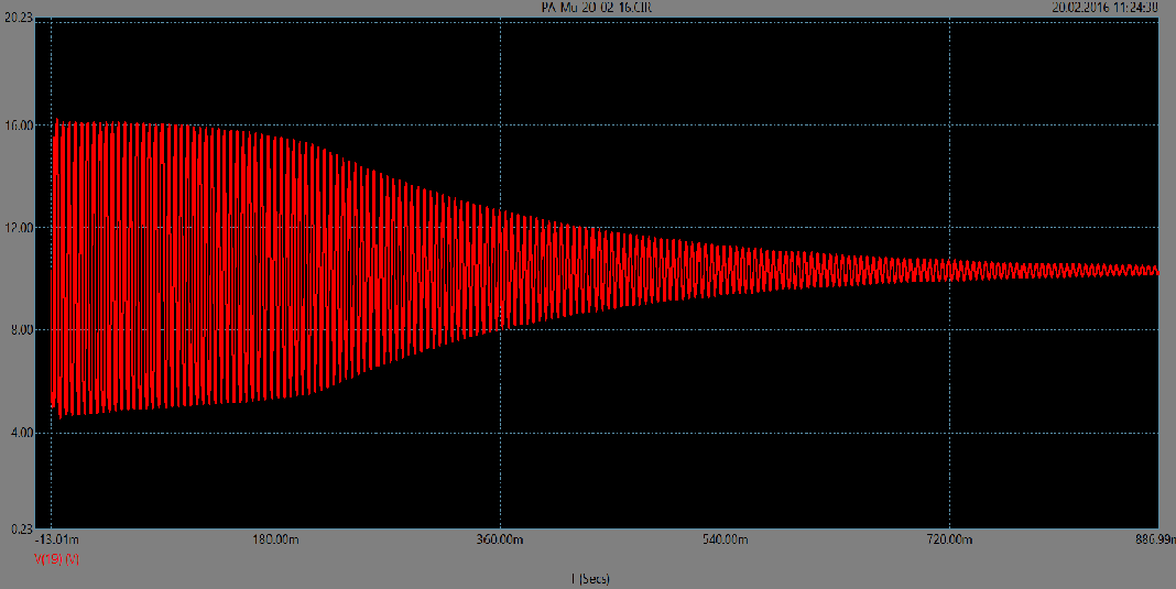 Питание от обычного выпрямителя; схема хорошо давит пульсации и грязь на питании (см график).