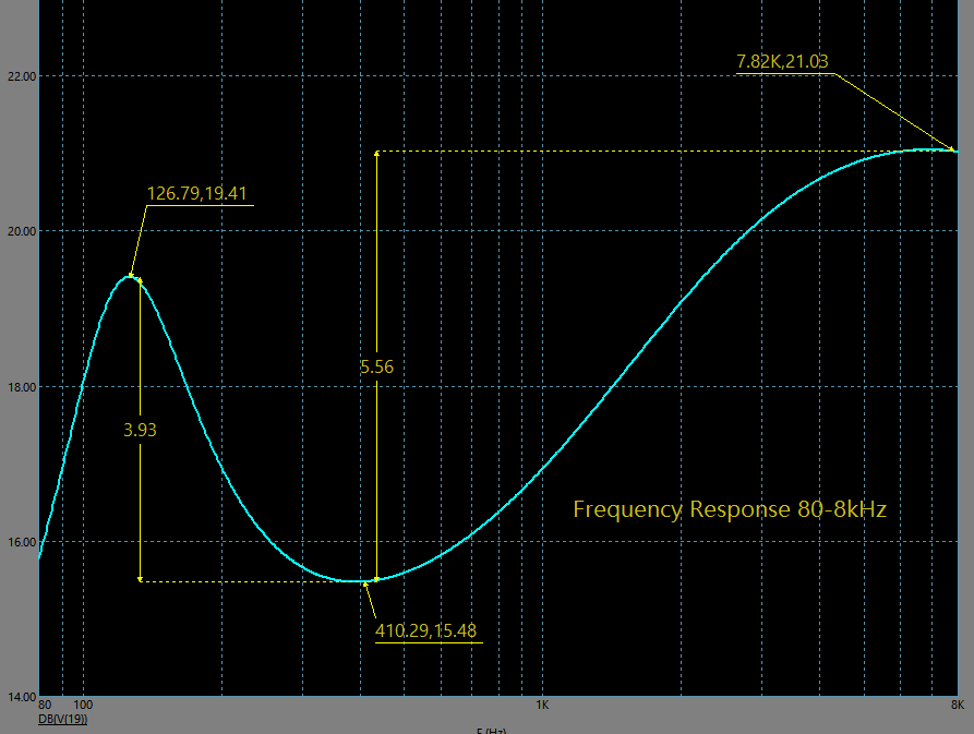 2 - АЧХ на эквиваленте гитарного динамика (показан на схеме)