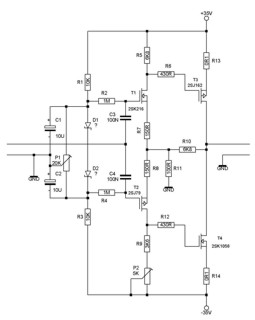 нашел одну свою старую схемку, подобной задачей маялся. Она даже умудрилась работать на IRFах, у которых ток покоя с температурой растёт. Вцелом похожа на последний вариант, но смещение организуется от цепи с источником тока (развязка от болтанки напряжения питания) вместо R1 и R3, ну и + защита по току каждого плеча мосфетом. Ну и усиления там нет, просто повторитель напряжения (сигнал от лампового преда). Если интересно, выложу... кстати, тоже думал уйти от развязки по постоянке, потом подумал - а зачем? Нижний срез можно сделать любым (помню, прикола ради рукой телепал 6-ю струну с частотой герца 3, а диффузор эти движения повторял )) ).