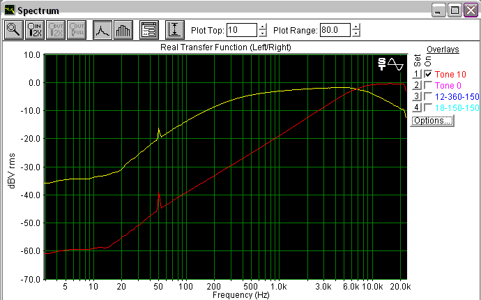И еще один момент. Не нравится мне такая схема измерения. Чтобы исключить всякие мешающие эффекты от эл-маг. связи источник-приемник, я делаю так: в разрыв земляного провода датчика включаю резистор 10-100 Ом. И подаю на него через резистор 10-100кОм сигнал с карты/генератора. Классическая схема измерения со времен магнитофонов. Получается реальная АЧХ "без посредников".