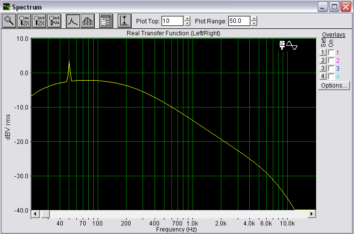 По-хорошему, ачх надо снимать на синус-свипе, а потом результат интегрировать... А как у тебя - очень ненаглядные измерения, ибо если не интегрировать, то линия от 0 гц до резонанса должна быть прямой, а у тебя изгибается.