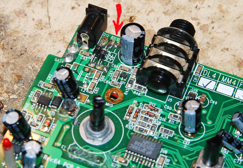 Камрады, может кто-то в теме или у кого-то в данный момент есть разобранный LINE6 DL4. Пришёл в ремонт с выпаянным компонентом D16, предположительно это стабилитрон: